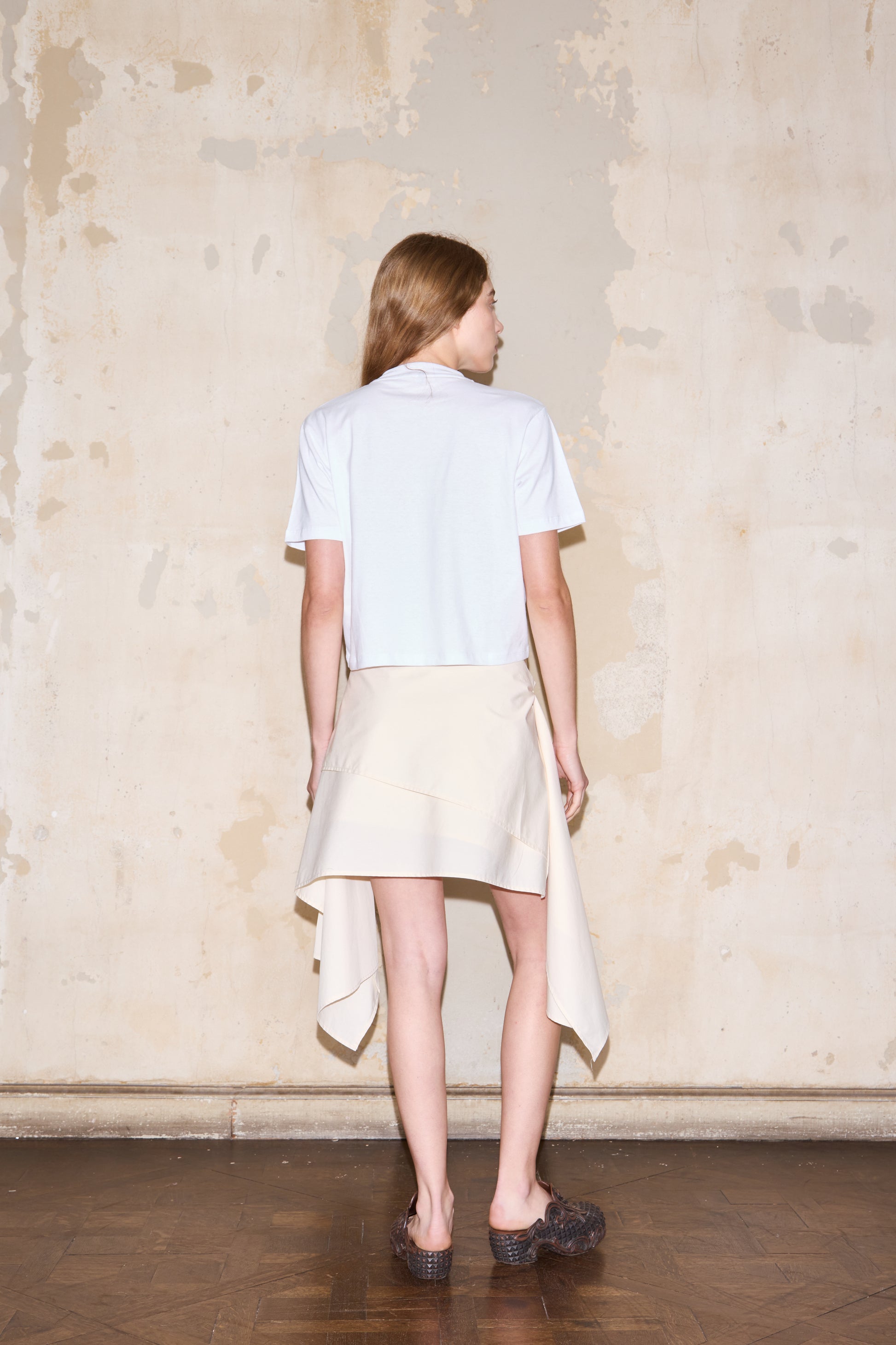 Falda a media pierna irregular con capas