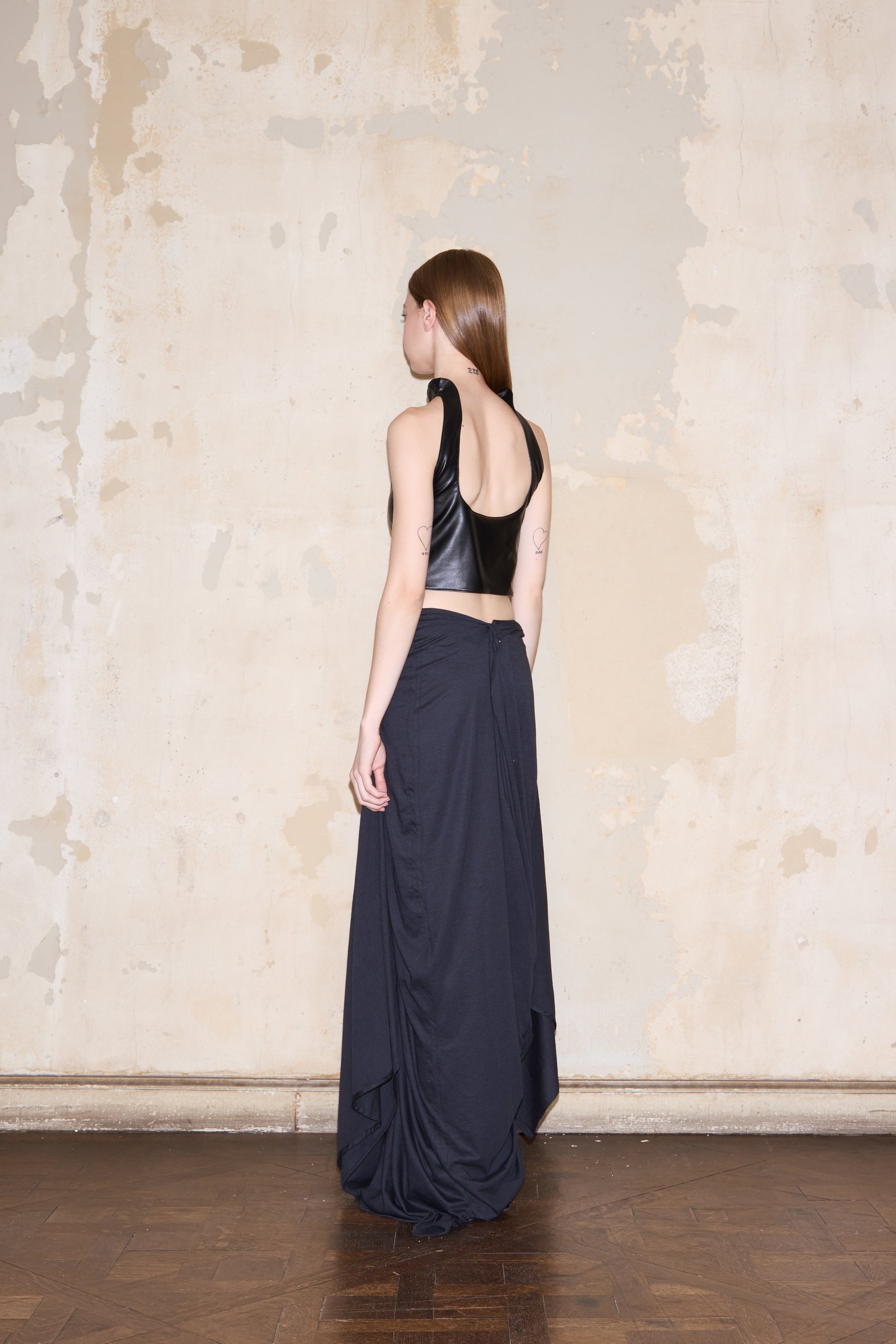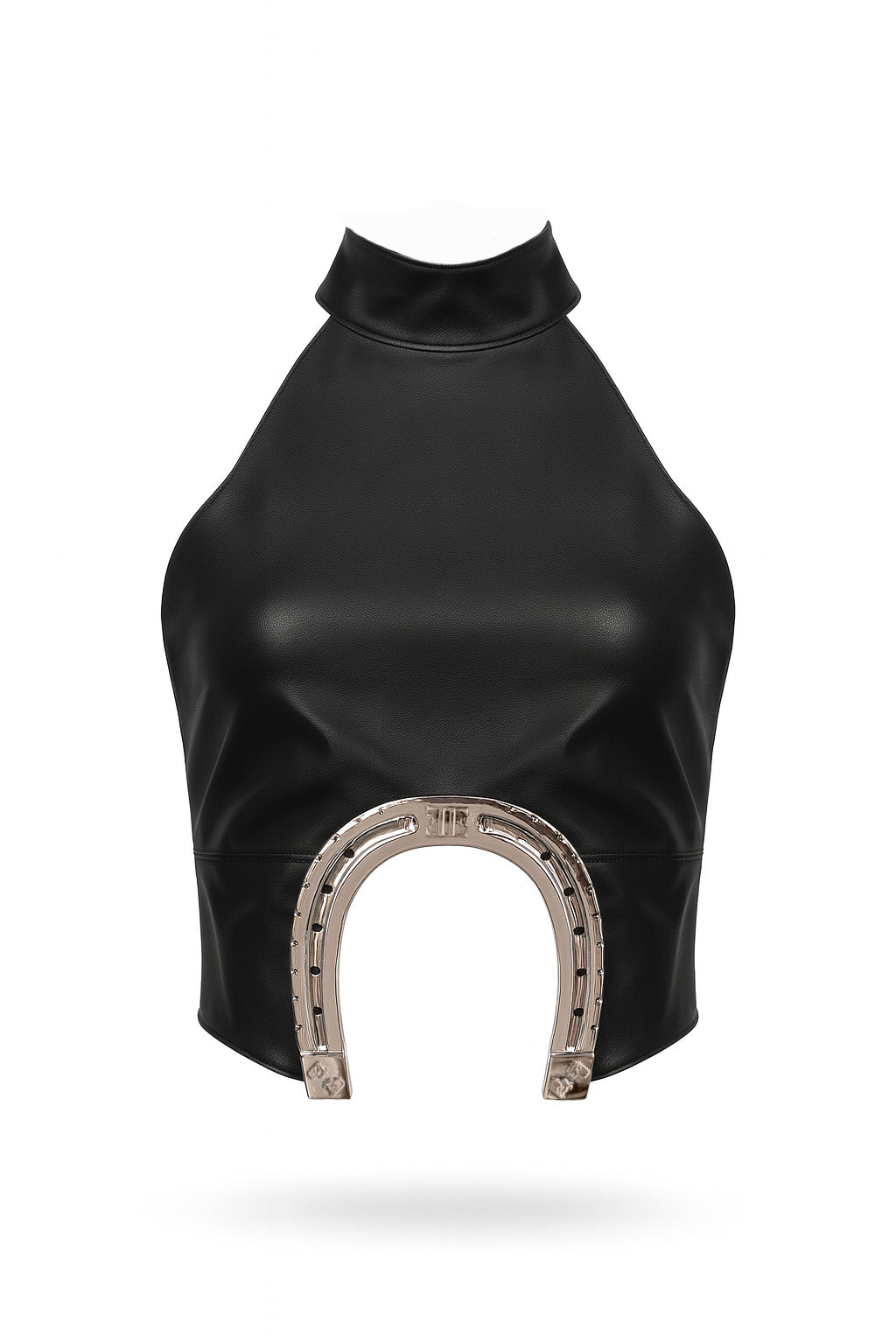 Top crop con escote halter y herradura grande ESQUINA debajo del busto. Espalda escotada. Forro interior
