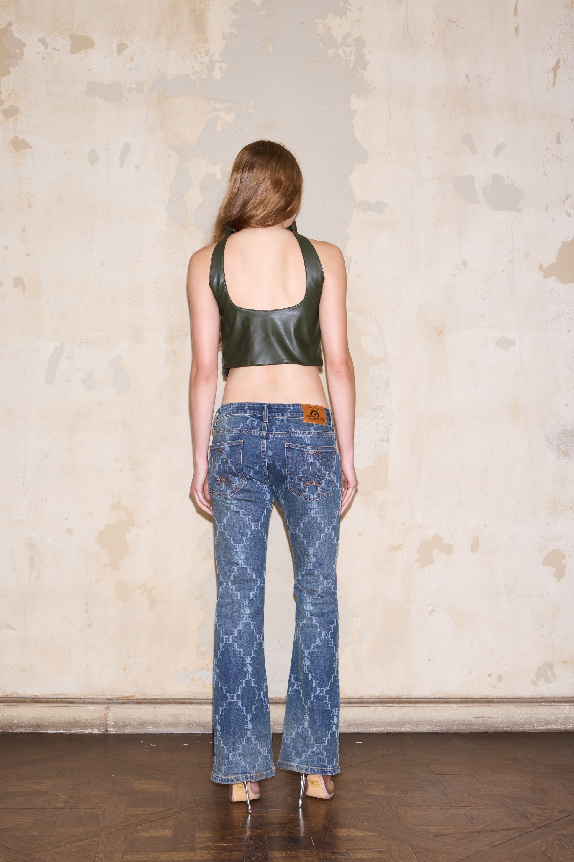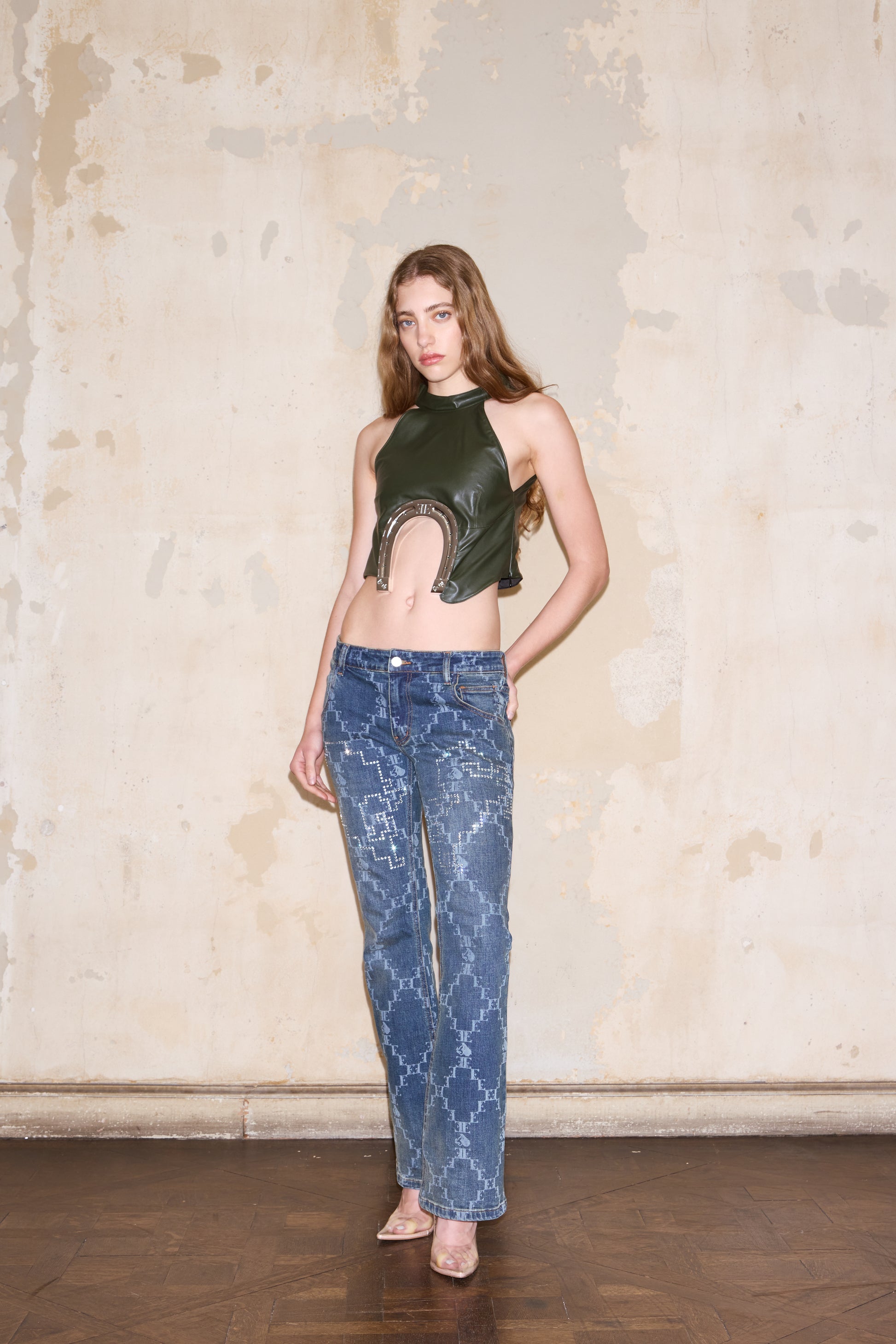 Top crop con escote halter y herradura grande ESQUINA debajo del busto. Espalda escotada. Forro interior